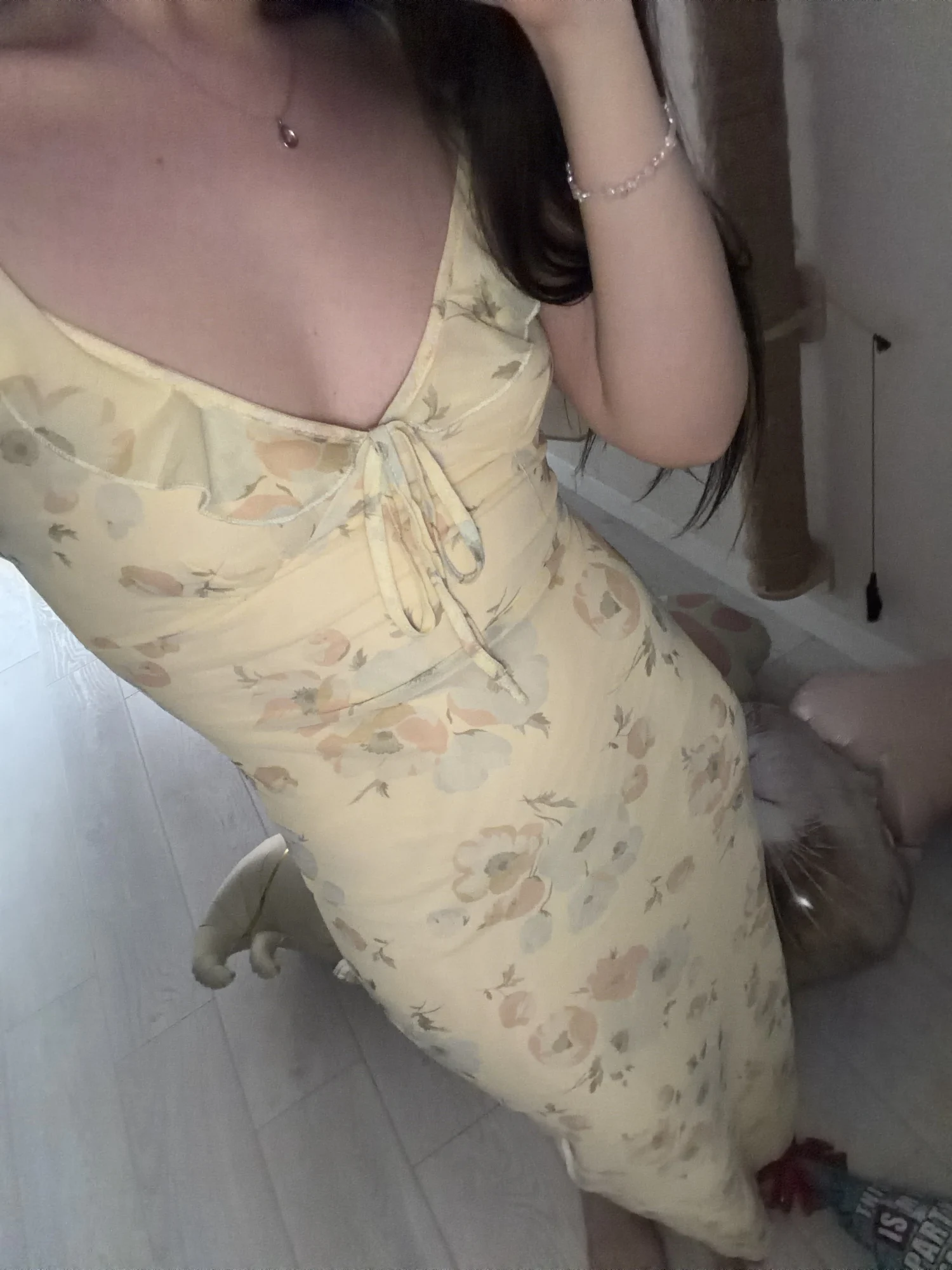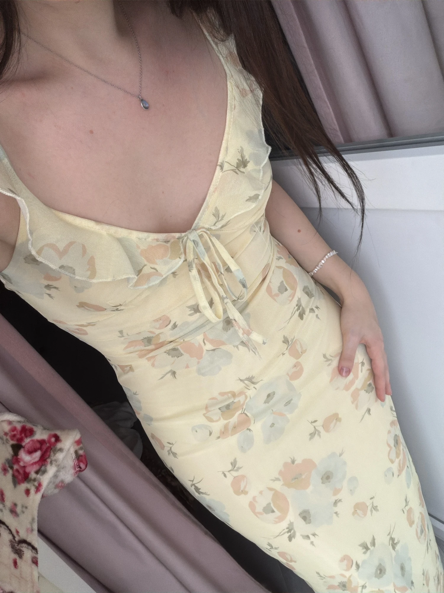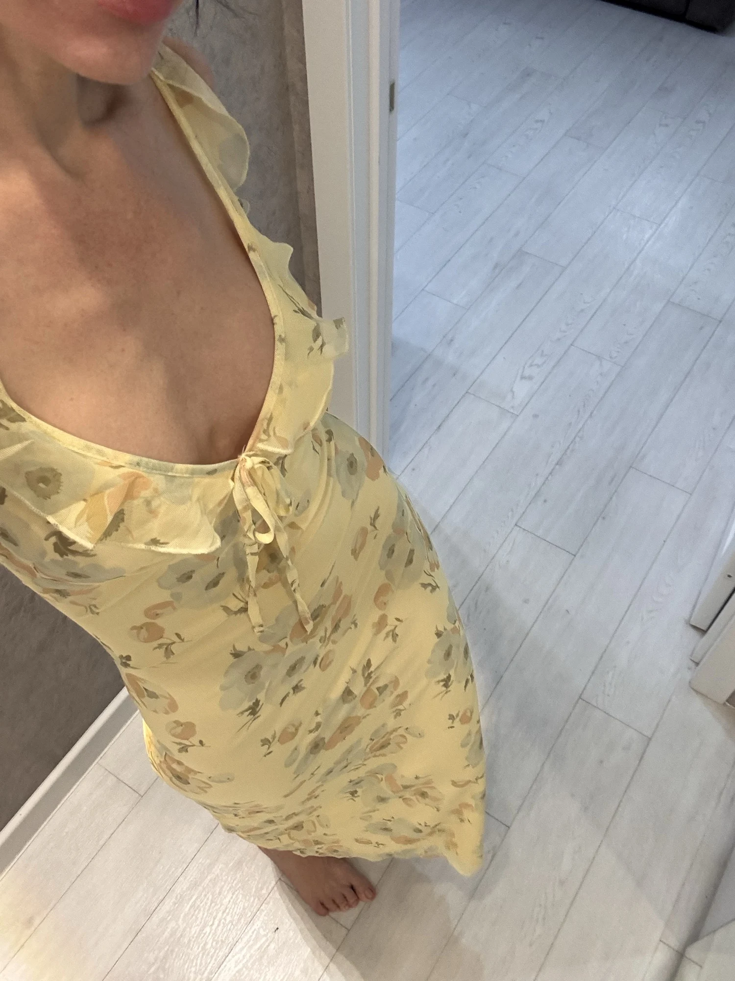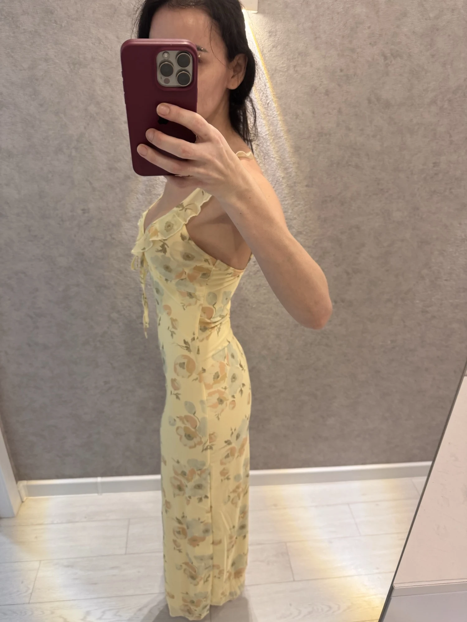 The dress is great, maybe the straps could be made a little tighter; it's perfect for a height of 162 cm, but it's comfortable because it stretches.
