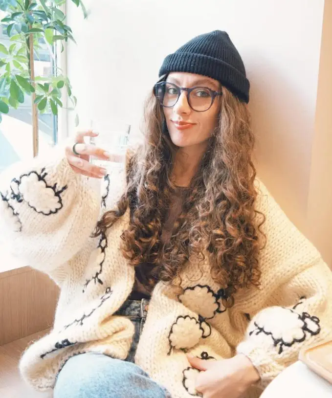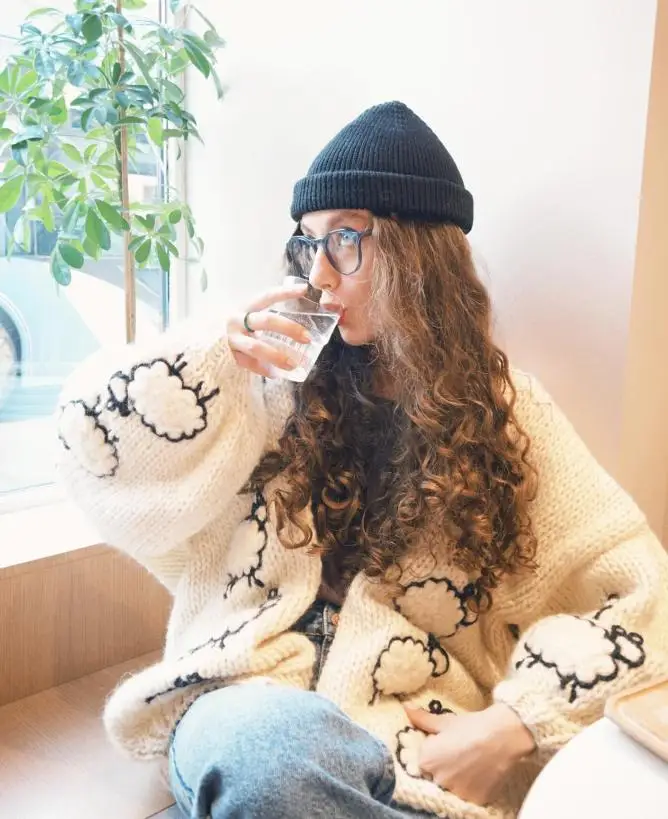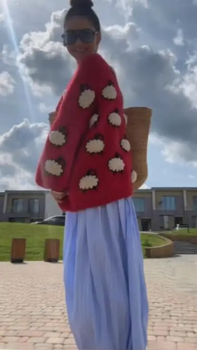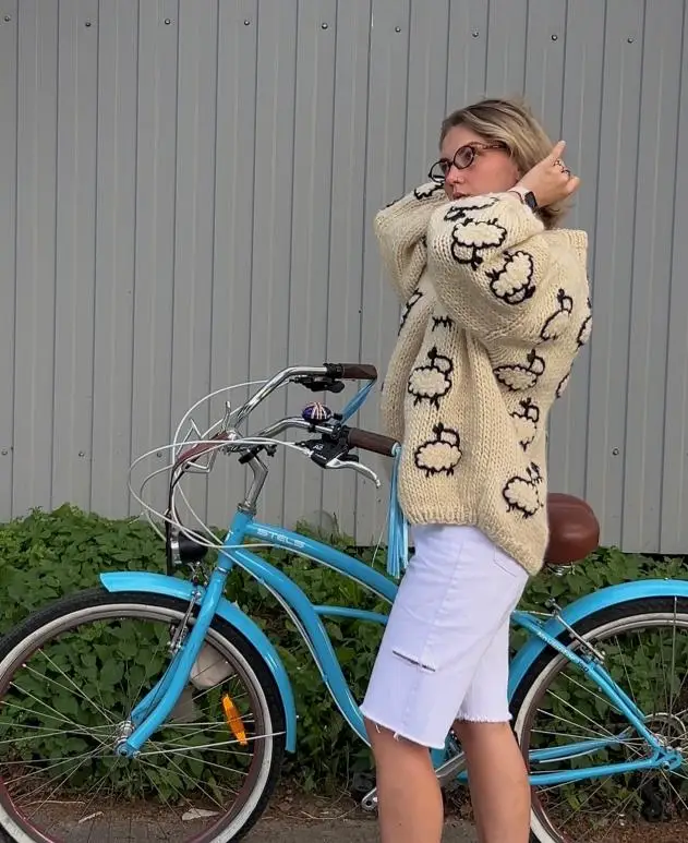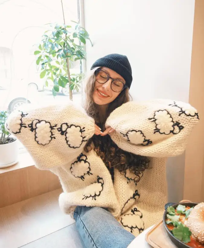 The Lantern Sleeve Embroidered Sheep Cardigan – Women’s V-Neck Chunky Knit Sweater 2026 Autumn combines cozy chunky knit texture with elegant embroidery details, making it a stylish choice for casual autumn and winter outfits.