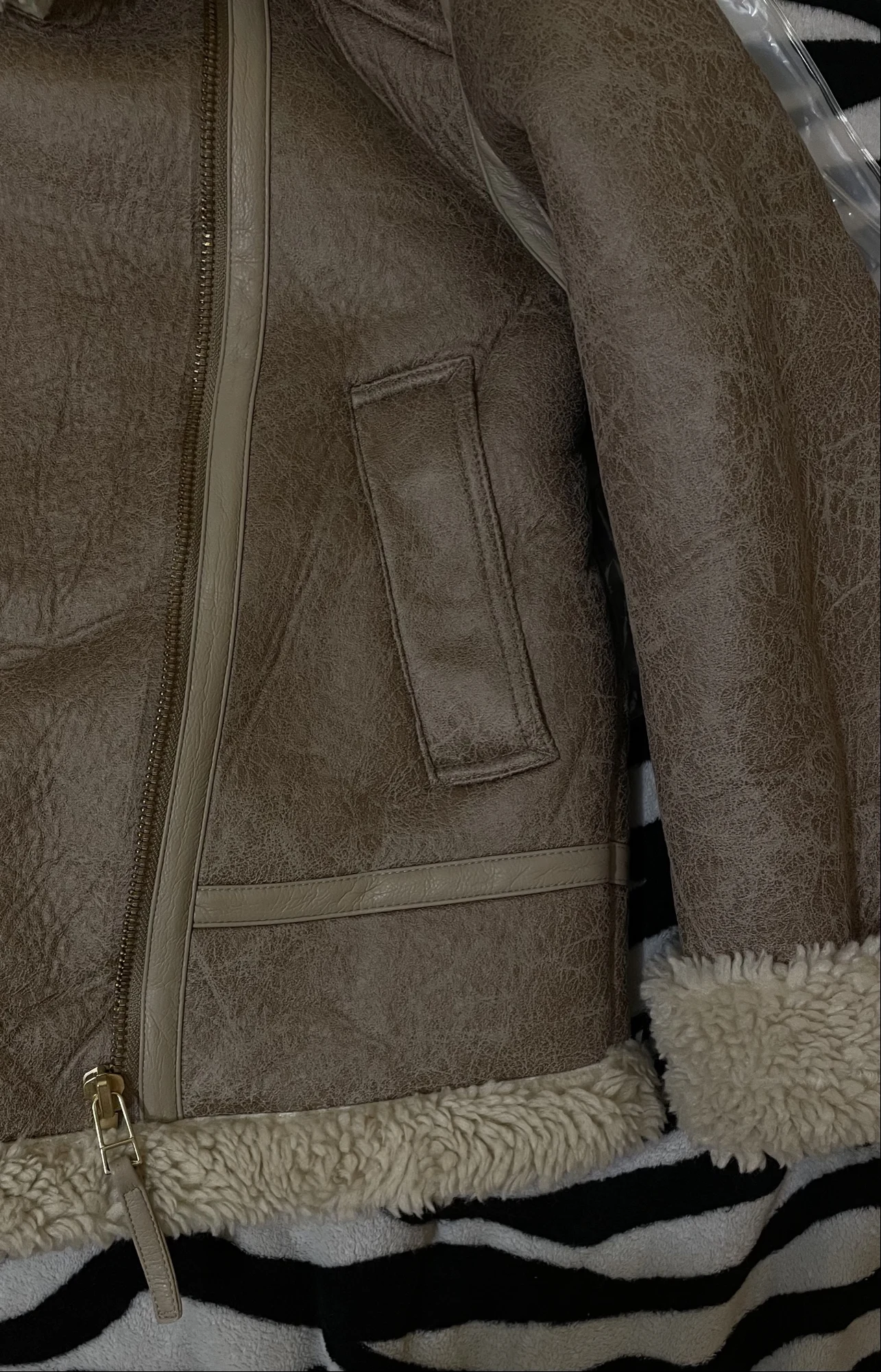 Cozy faux lamb fur leather jacket with a warm thick lining, turn-down collar, and biker style — perfect for cold autumn and winter days.