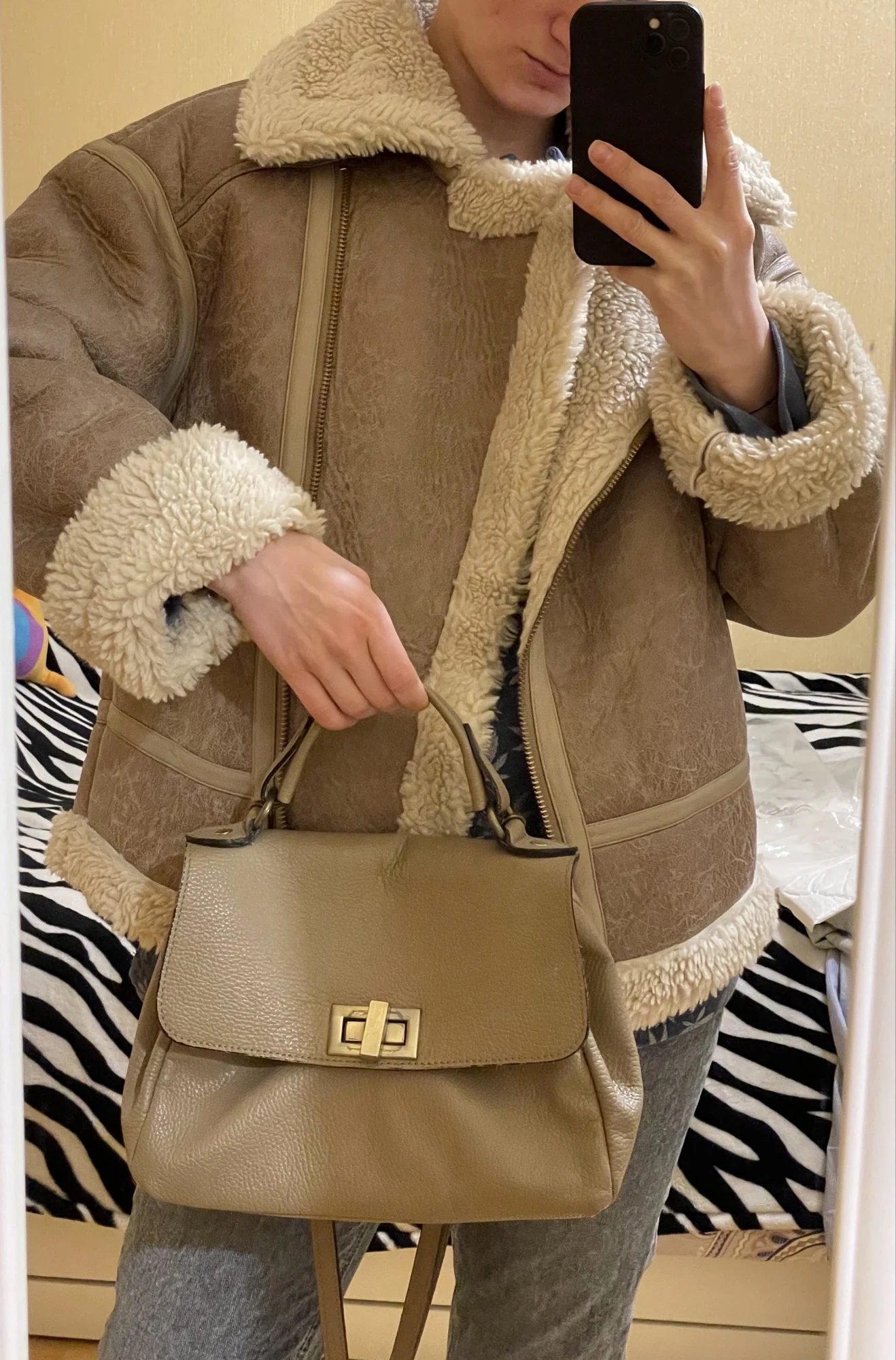 #FauxFurJacket #ApricotStyle #BikerChic