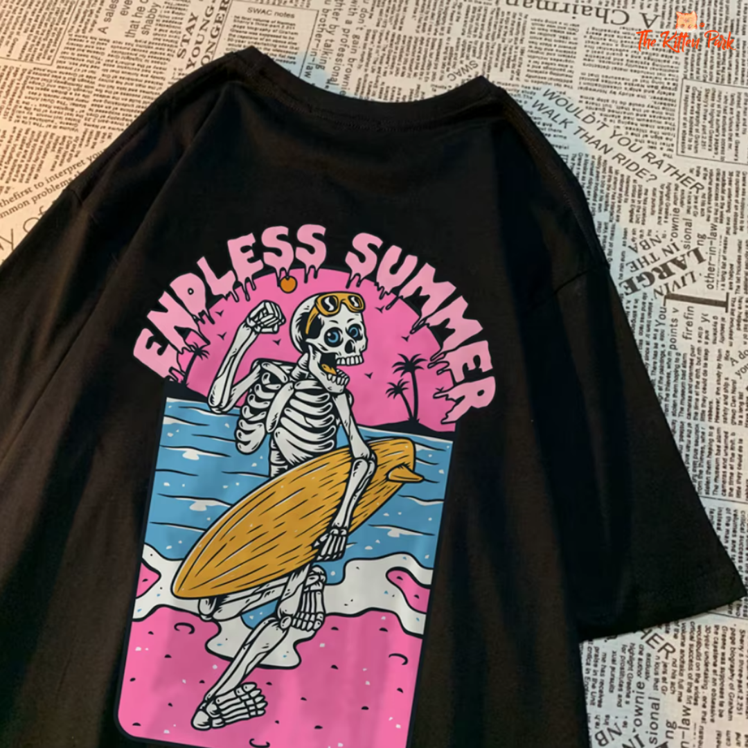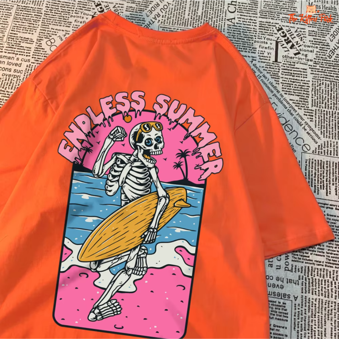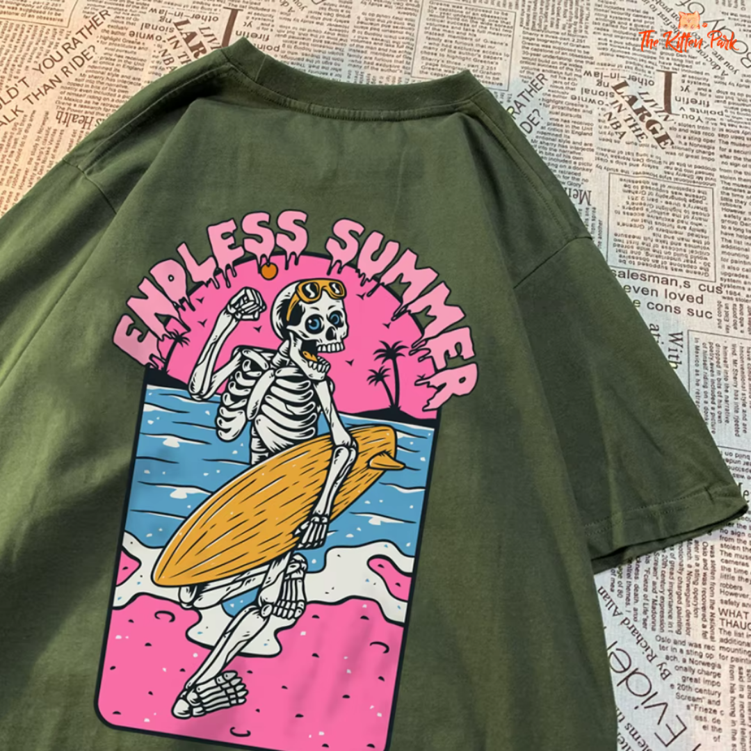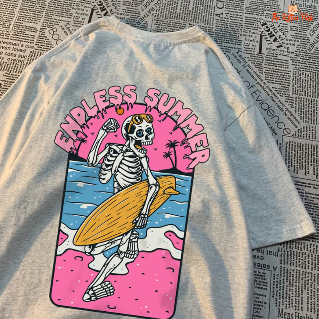 Endless Summer Skull Surf Tee – Harajuku Cartoon Graphic Cotton T-Shirt