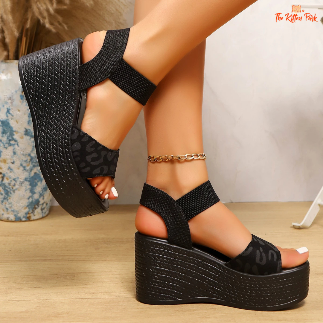 Women’s Leopard Wedge Peep Toe Sandals – Platform Thick Sole Summer Espadrilles