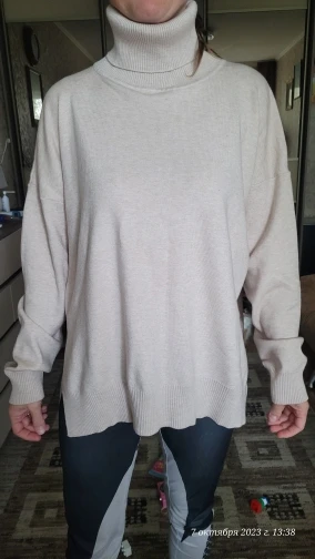 ⚡Turtleneck sweater with a high turning neck, sleeves with elastic cuffs, and vertical cuts at the hips. Well suited for autumn-spring under a light jacket. I recommend it if you don't consider the one "but" I mentioned at the beginning.