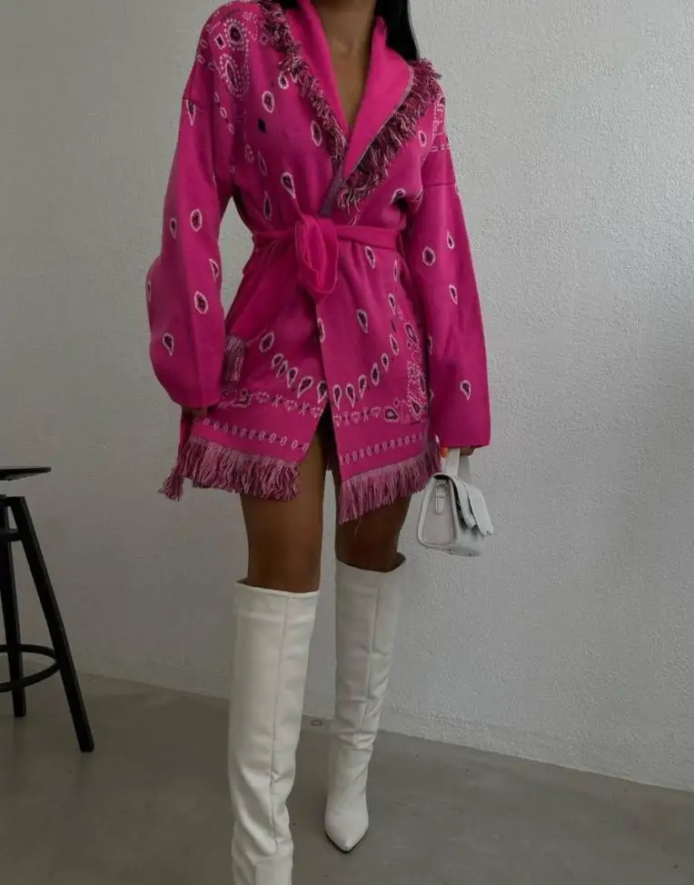 A warm, stylish cardigan perfect for layering, designed with striped patchwork and a relaxed silhouette.