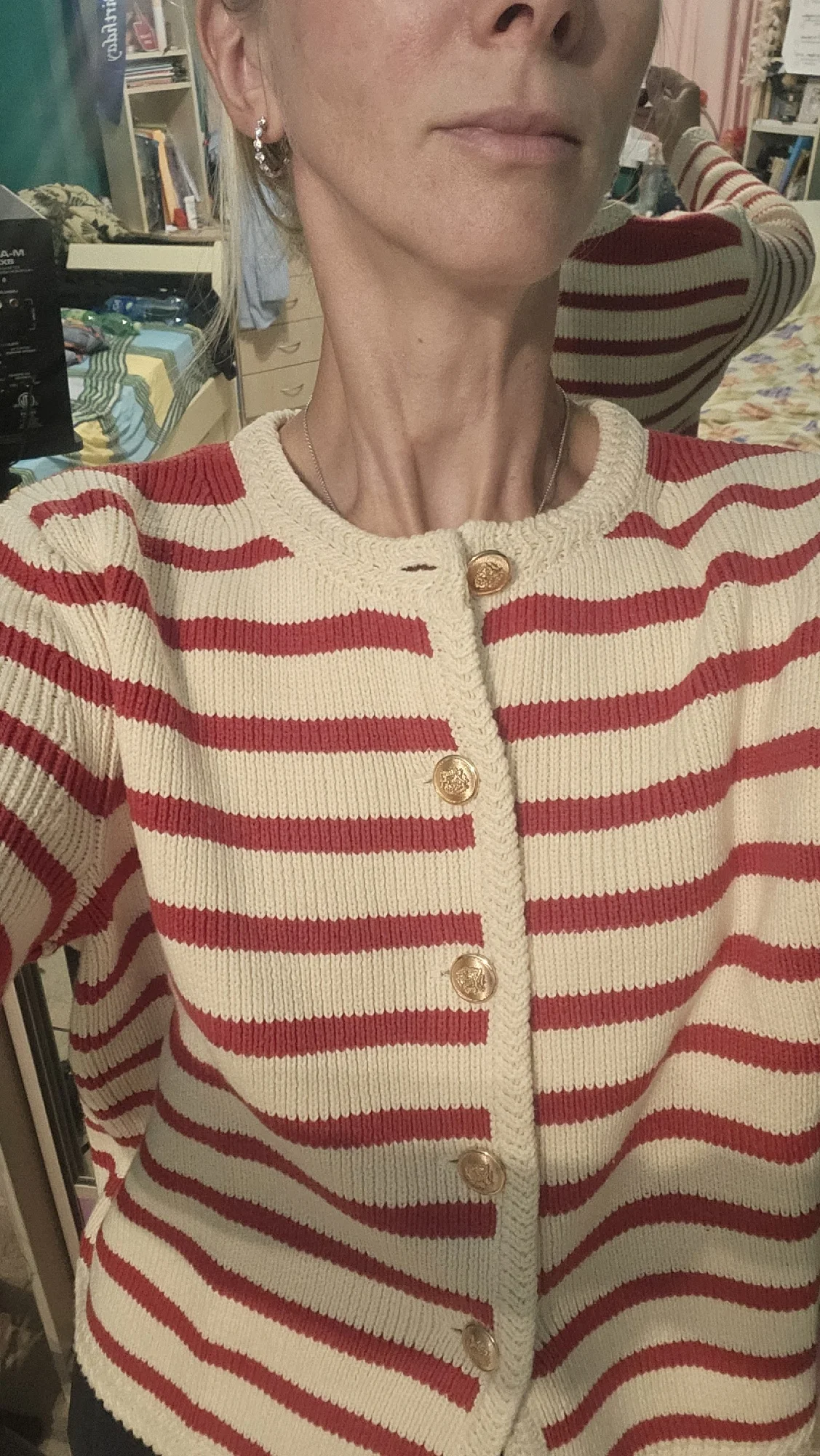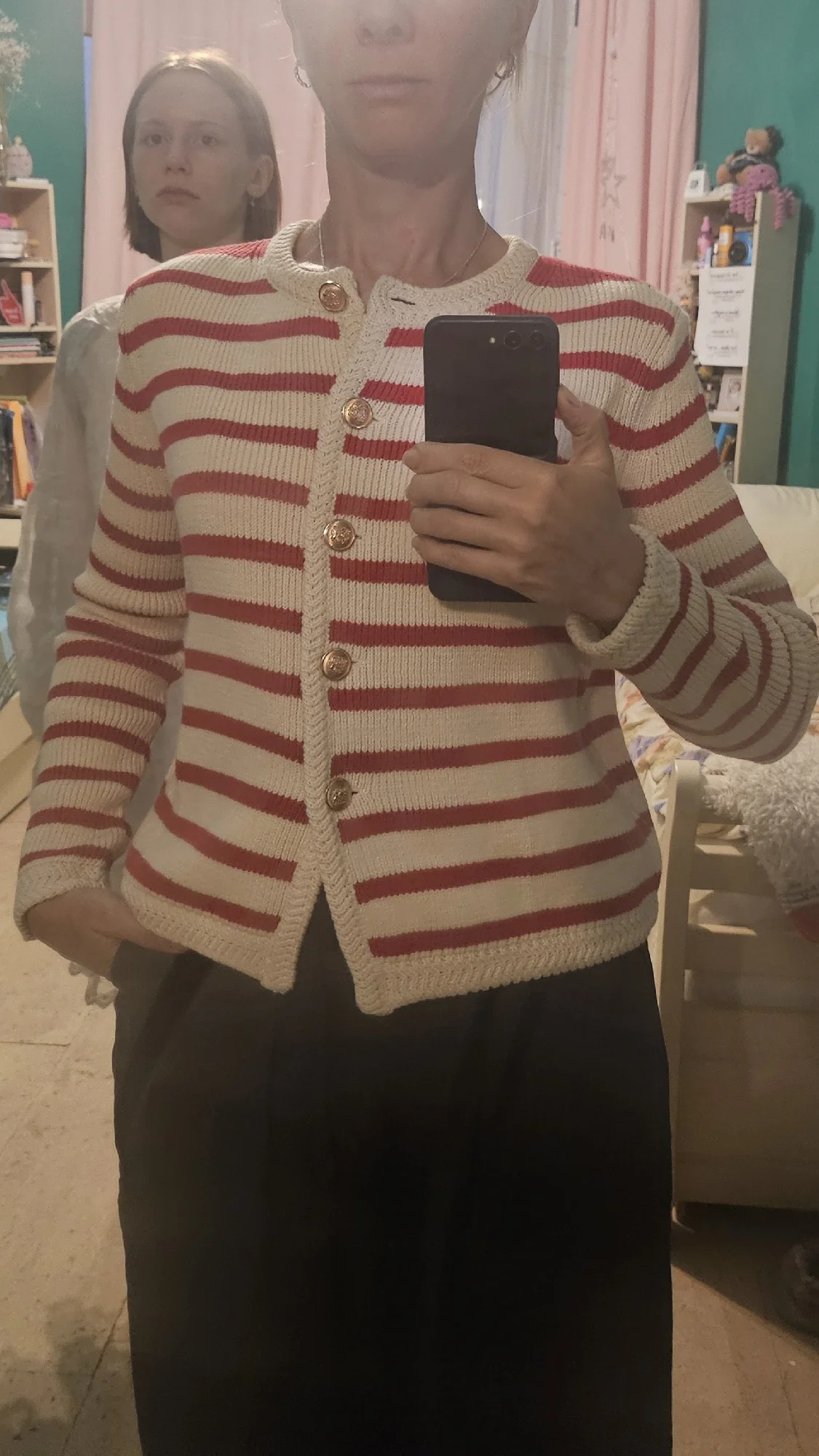 My height is 166 cm, the cardigan fits well.