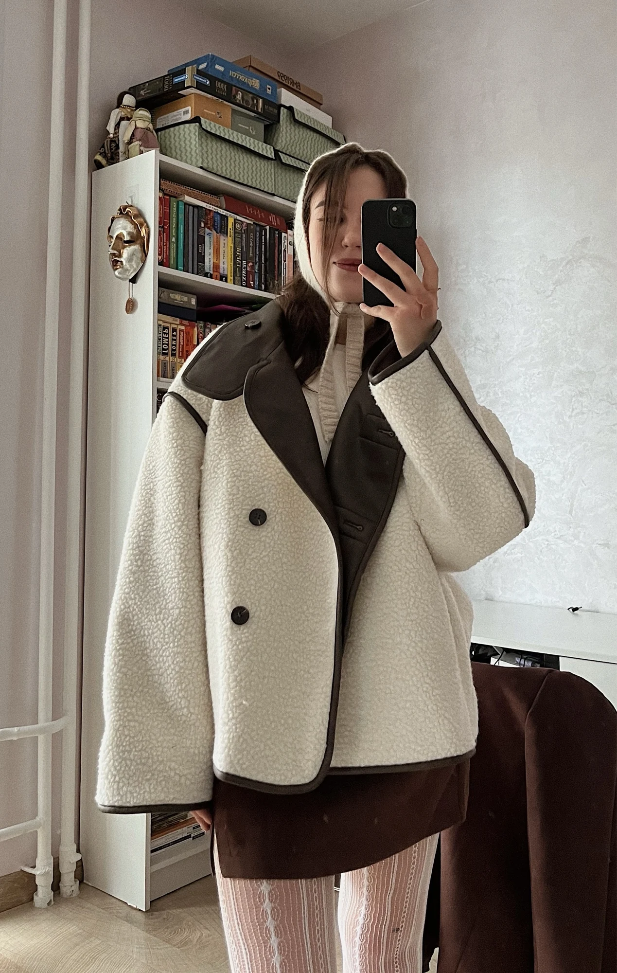 I was swollen and I still really like that it is double-sided, which is a huge plus. plush side, unexpectedly, I like it more, there are still such cool contrasting seams.