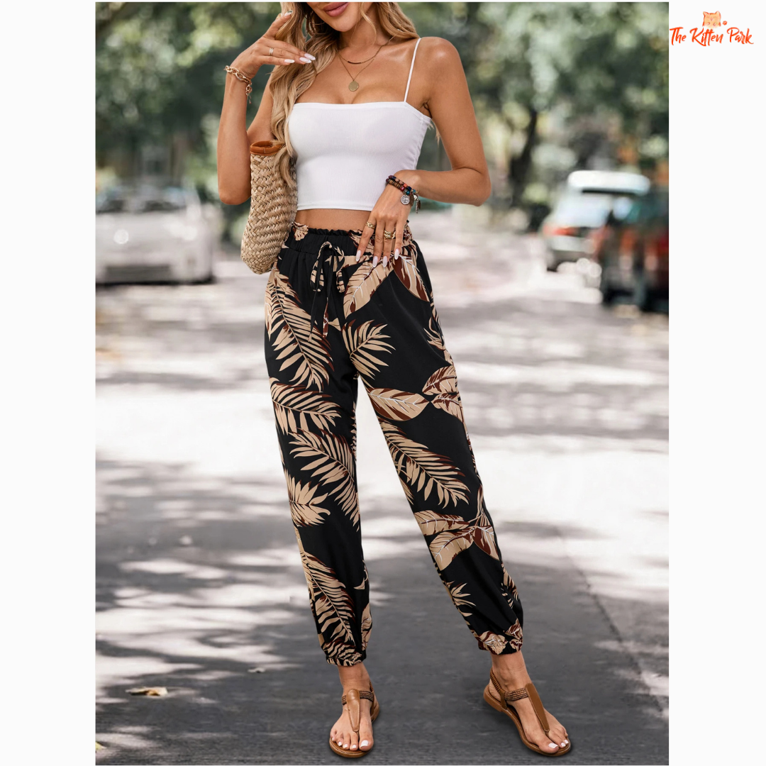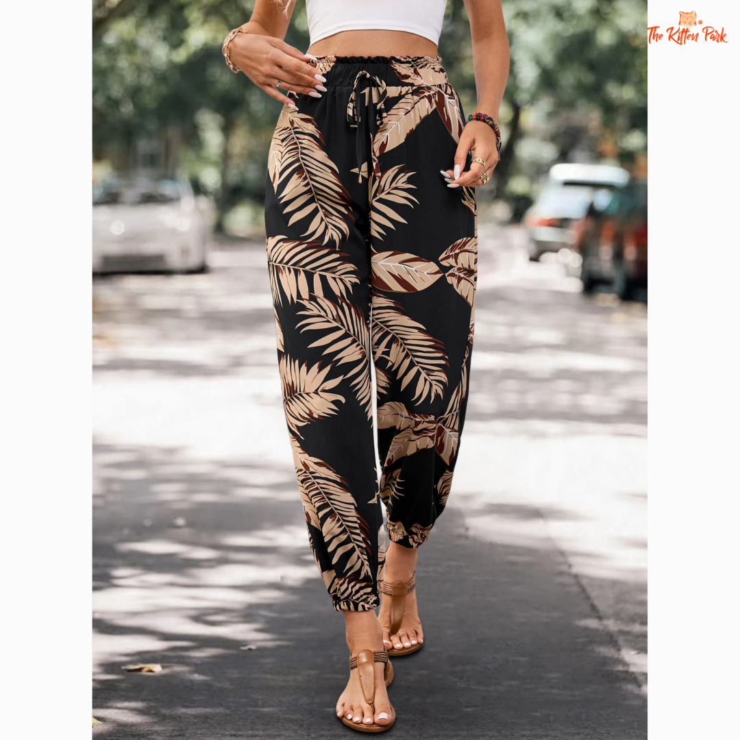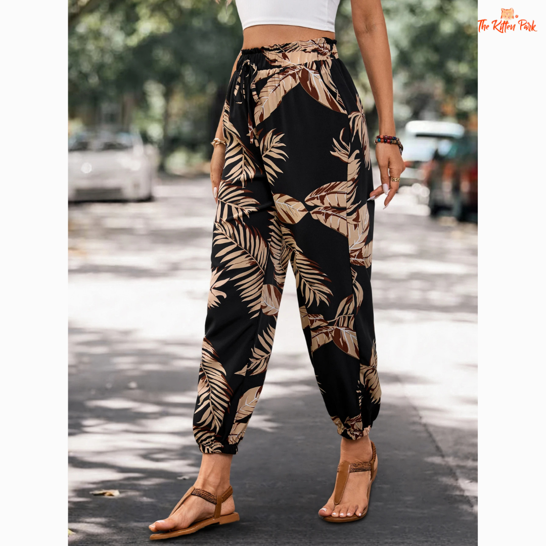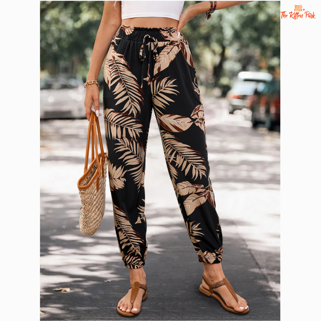 Plant Print Pocket Joggers – Women's Casual Loose Summer Trousers