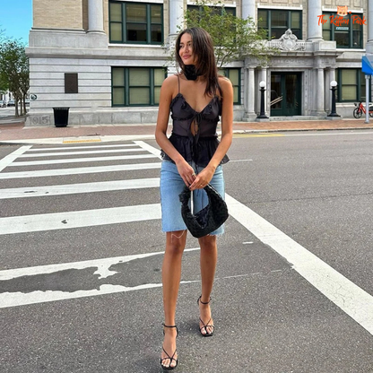 Frill hem, backless silhouette, and tie detail β a dreamy Y2K crop top crafted for summer raves and festival nights.